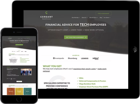 Focused on displaying Cordant Wealth’s experience while still guiding visitors down the right path, we customized the home page design to highlight where Cordant Wealth has been featured and bring attention to the free assessment the firm offers.