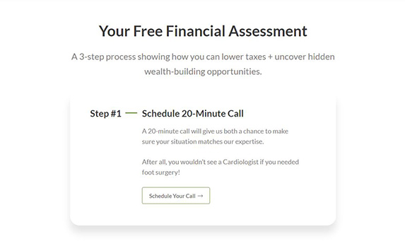 Toward the bottom of the page, the website reiterates the “Free Assessment” Call to Action button, which serves as the primary conversion for the firm.
