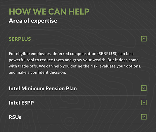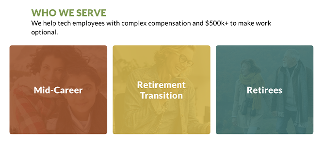 Cordant Wealth takes their “Who We Serve” section a step further with custom page design for three employee types. This allows Cordant Wealth to better address the unique needs of their clients.
