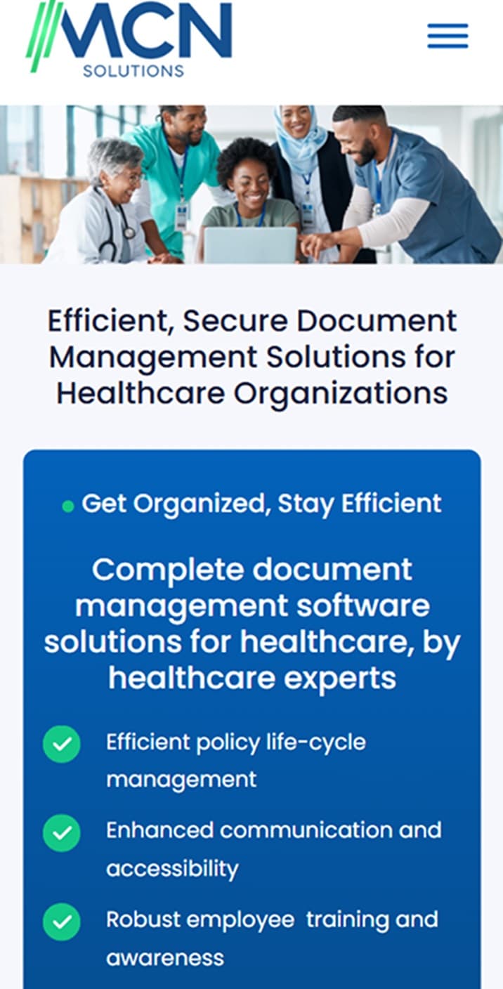 The pages were designed to make it as easy as possible for web visitors to understand MCN’s solutions, process, and expertise.