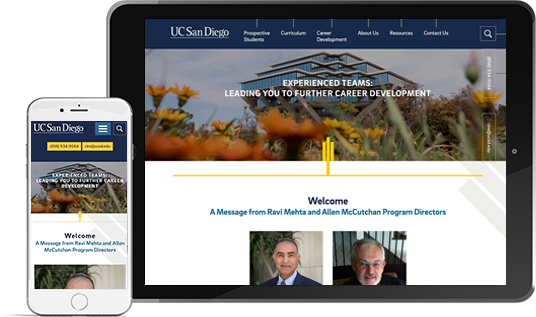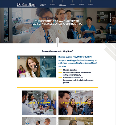 Through an iterative design process, our web designer created several custom page designs and integrated the UCSD branding style guidelines & marketing collateral.