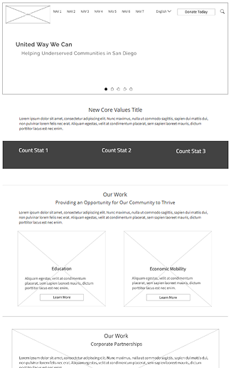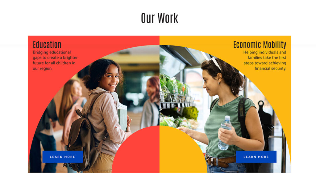Once the wireframes were finalized, one of our website graphic designers dove into the details of the website rebrand with the United Way team, aiming to better understand the visual identity and emotional values of the organization.